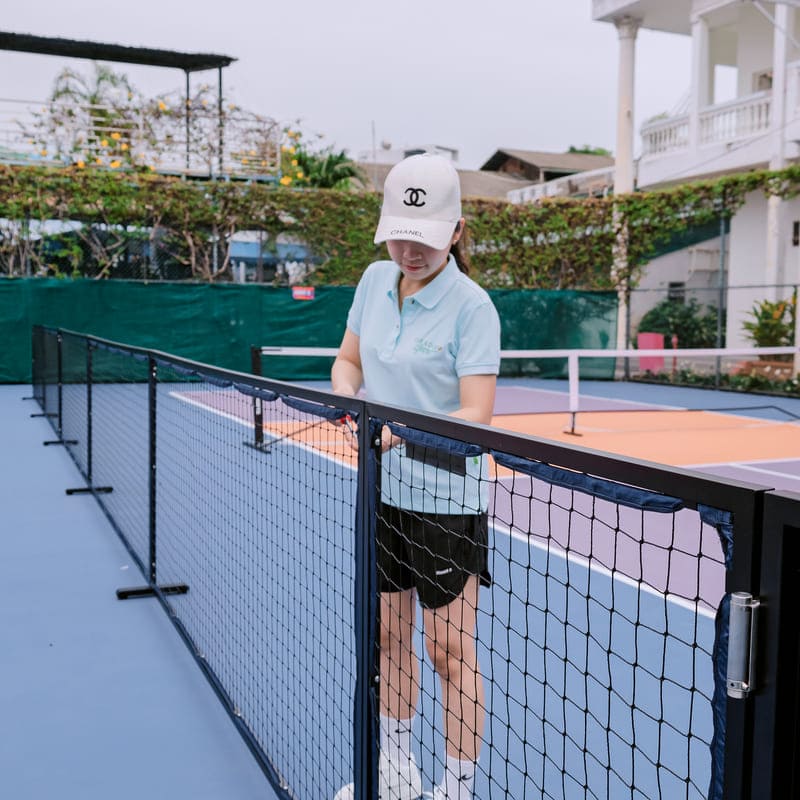 Khác với hàng rào cố định, barie sân pickleball thường có thiết kế linh hoạt, dễ tháo lắp, dễ di chuyển và phù hợp cho cả sân tạm thời lẫn sân cố định. Chiều cao barie phổ biến dao động từ 80cm - 120cm, đủ để chắn bóng pickleball nhưng không gây cảm giác bí bách hay che khuất tầm nhìn.